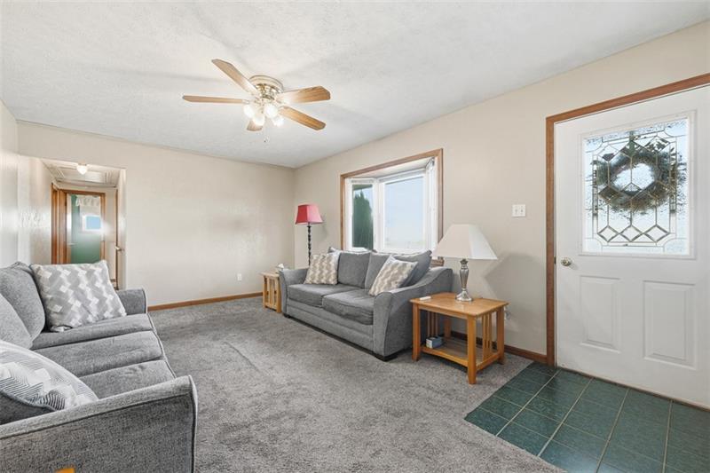 CASUAL CONVENIENCE. Step into comfortable one-level living with an attached two-car garage. This well-cared-for home offers three bedrooms, one full bath, and a convenient partial bath on the first floor, along with a spacious laundry area. The updated kitchen features an abundance of wood cabinetry extending to the ceiling, white appliances, and a stainless-steel sink. The dining area is open to the kitchen and features French doors overlooking the backyard. Enjoy outdoor living on the large covered porch"”perfect for entertaining or relaxing. The level backyard includes a basketball court for added fun. The finished lower level offers a canning kitchen, full bath, and a large game room. Major updates include the roof, windows, siding, furnace, and central air.