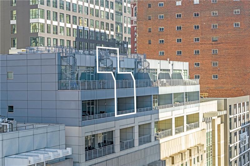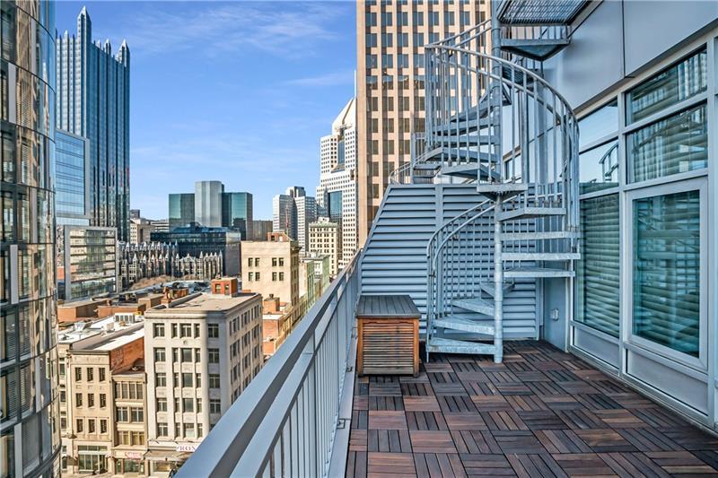 Approximately 2,600 SF of inspirational design, a 2-story townhome style property with 3 levels of balcony sitting atop the iconic Piatt Place Condominium. A sterling location in the heart of the Golden Triangle overlooking the panoramic downtown Pittsburgh city skyline. This exceptional residence is the only multi-level penthouse ever offered at Piatt Place. Originally constructed as two units and thoughtfully combined, the home offers remarkable floor plan versatility, quality craftsmanship, and architectural detail, along with spectacular views from three private balcony levels. The main level features a welcoming gallery foyer highlighted by a stunning craftsman-style staircase, a spacious great room with gas fireplace, well-appointed kitchen, and a generously sized dining area ideal for entertaining. A versatile flex space is perfect for a home office, exercise area, or Peloton room, along with a convenient powder room. The lower level opens to a comfortable gathering room with a wall of custom cabinetry. The owner's suite includes a private covered balcony, luxurious en-suite bath, and walk-in closet. A separate guest wing and laundry area provide additional convenience. The metropolitan rooftop terrace is a remarkable outdoor amenity, providing a private retreat exclusive to this residence and one of only eight terraces in the building. The only 24-hour security attended lobby in the city and a premier location complete this one-of-a-kind urban residence. Live where the city comes alive. Step into the newly renovated downtown areas of Market Square and Arts Landing a new riverfront hub and enjoy dining, entertainment, culture and the ultimate urban lifestyle right outside your door!