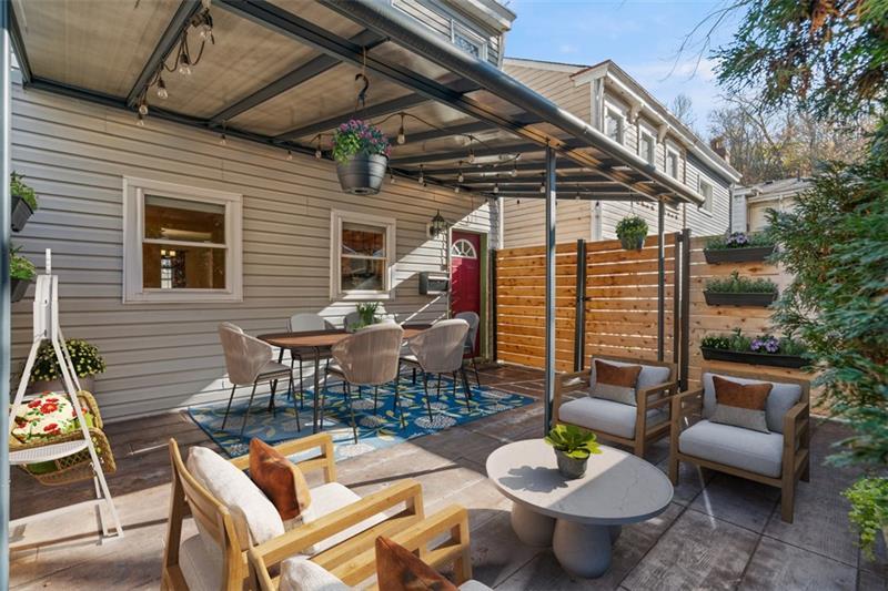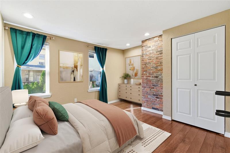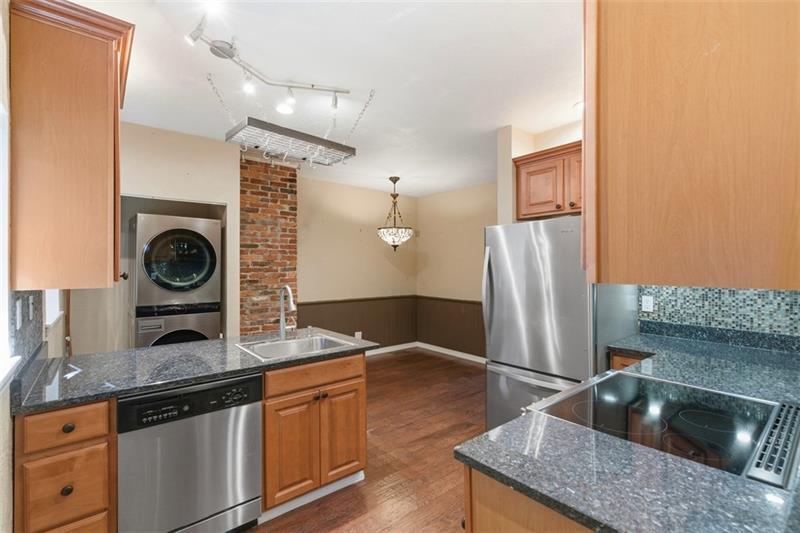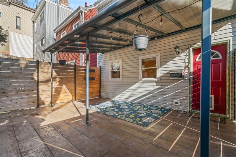 Enjoy the perfect mix of old-fashioned style and modern conveniences with this SouthSide Flats charmer! Brand new laminate floors greet you as you walk in the front door. The centerpiece of the LR is a decorative fireplace with exposed brick and marble accents. The fully equipped kitchen features stainless appliances and quartz countertops with plenty of workspace to create your culinary delights. On the second floor, you will find 2 BR each with their own ensuite bathroom. The primary features a jetted tub and walk-in shower. On the 3rd floor there is another huge bedroom with an ensuite, perfect for guests. (Also great as an in-home office.) The private fenced courtyard with stamped concrete patio and a new awning is an entertainer's dream. Buyers can have peace of mind with many recent mechanical updates: 50 year roof, tankless hot water heater, duel fuel heat pump, split A/C system, water softener, steam humidifier, 200 amp electrical svc. Great location on quiet dead end street!
