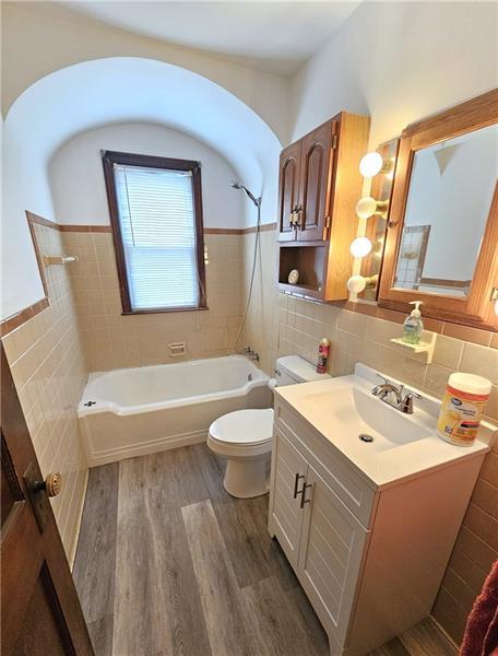 This adorable home is move in ready and offers one level living w/ 2 bedrooms and the full bath on the main floor. The covered porch offers a nice outdoor space to relax and welcomes you into the kitchen w/ gas stove included & pantry cupboard for extra storage. The charming arched doorway leads to the living room w/ tasteful dark stained hardwood floors. A small table could be added in the living room for a dining space if desired. The living room leads out to a small deck. 2 bedrooms are included on the main floor as well as a full bath w/ tub/shower. A cedar closet & linen closet provide nice storage space. Upstairs you'll find additional space for a 3rd and possible 4th bedroom or use the open space as a den/sitting room. The basement offers laundry space, workshop area, small storage room & door to the outside. The lot is a manageable size & includes 2 off street parking spaces. This house could be a great owner-occupied home or a nice rental property.