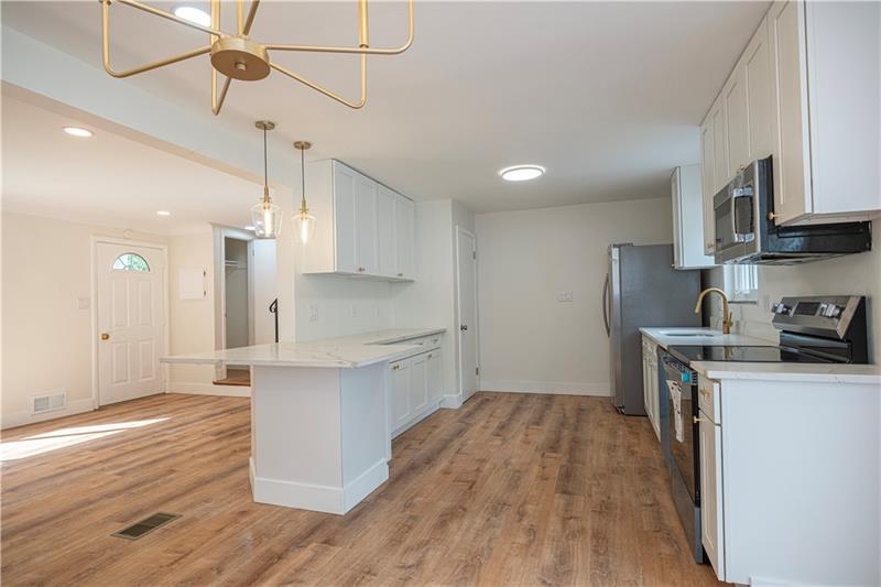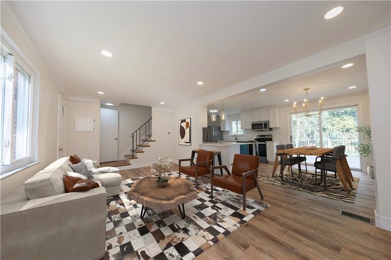 Welcome to your dream home in Greenfield! This fully renovated 3-bed/2-bath home offers modern living with thoughtful design and high-end finishes throughout. Step inside to find a bright open floor plan with a gorgeous new kitchen featuring quartz countertops, custom cabinetry, and SS appliances. From the dining area, walk out to a new trex deck where you will enjoy sweeping views of Oakland's iconic Cathedral of Learning, a perfect backdrop for relaxing and entertaining. Upstairs, you will find spacious bedrooms, and the convenient second floor laundry. The lower level provides flex space for a home office or home gym, new full bath and access to garage. Outside is a real treat, the fenced yard offers abundant private space! Also, a French Drain System was added to remove water from the backyard. Enjoy a NEW HVAC, NEW HW TANK, NEW SEWER LINE; NEW ELECTRICAL PANEL Additionally, this gem sits on a DOUBLE LOT with a widened driveway! THIS IS A MUST SEE!!