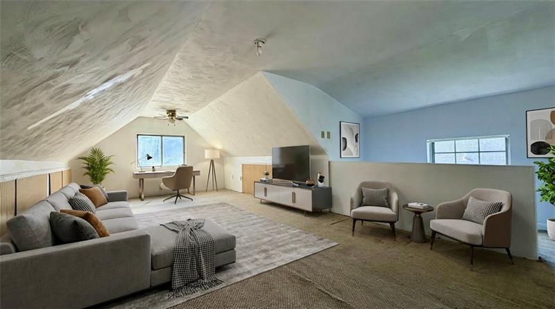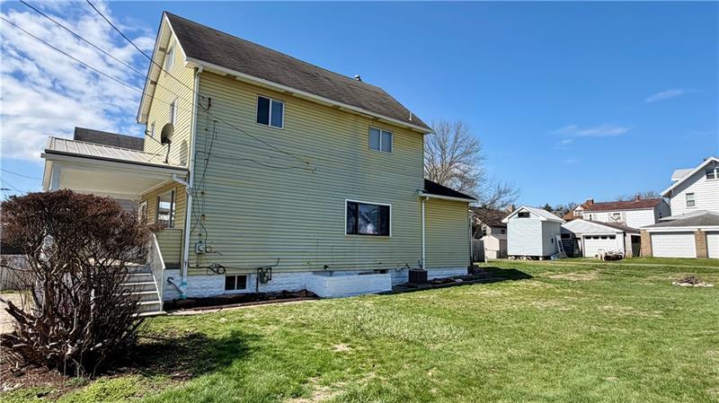Welcome to this beautifully updated 2+ story home offering charm, space, and versatility! Situated on a spacious, level lot with convenient rear alley access for off-street parking, this property combines functionality with modern updates. The main level features a large, inviting living room, a formal dining room perfect for entertaining, and a brand-new kitchen complete with abundant cabinetry and Corian countertops. From the kitchen, step out onto the covered rear porch"”ideal for relaxing or hosting gatherings. A full bath on the main level adds extra convenience. Upstairs, you'll find two generously sized bedrooms with updated doors, ample closet space, and beautifully refinished hardwood floors. The upper level also includes a tastefully updated full bath. The finished third-floor attic provides incredible flexibility"”perfect for a family room, game room, home office, or even a potential third bedroom. An additional separate room offers the ideal space for a walk-in closet or small office. The lower level includes a full basement with exterior access and plenty of storage options. Enjoy outdoor living with both covered front and rear porches, all set within a lovely, walkable neighborhood. Conveniently located just minutes from the PA Turnpike, Route 910, Pittsburgh Mills Mall and Route 28, with a short drive to Pittsburgh. Close to shopping, dining, and everyday amenities. Numerous updates throughout ownership make this home truly move-in ready!