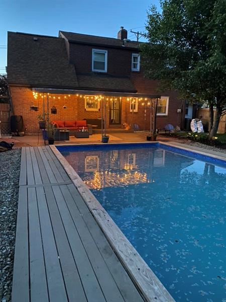 Welcome to this charming, meticulousy maintained 2-bedroom brick home on a spacious corner lot. As you enter the home, the nicely sized living room has a cozy gas fireplace, updated kitchen with a farmhouse sink, gas cooktop, double oven, refrigerator, kitchen island, dining area, half bath and enclosed sunroom. The rear patio and inground pool can be accessed from the kitchen. The upstairs features 2 bedrooms and a full bath. The spacious primary bedroom features a generous walk-in closet for all your storage needs. The lower level features the laundry area, and a bonus room with a full bath. Attached garage and off-street parking. Nicely landscaped with multiple perennial beds that provide stunning curb appeal. Enjoy your private, fenced in yard with an inground pool and patio this upcoming summer!